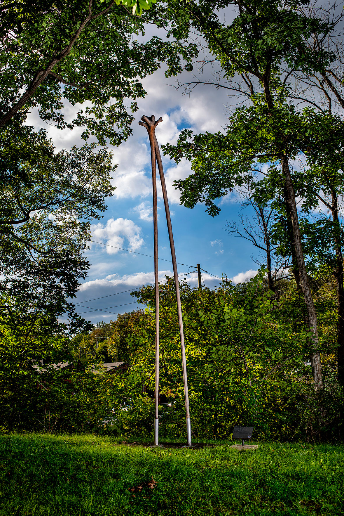 Madsen’s previous installation on the trail was Nobori, made in 2010 of carved pine and fir with redwood, purpleheart, walnut inlays, and splints.
